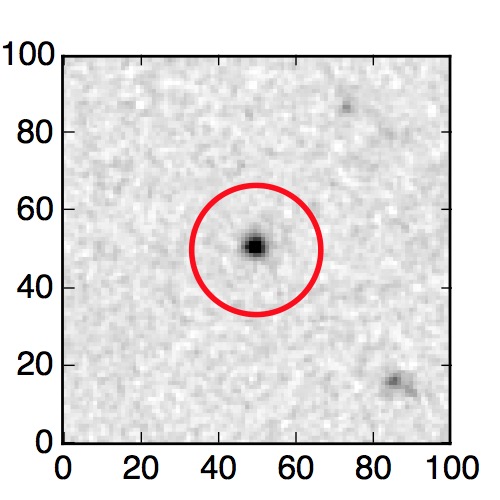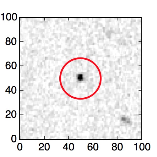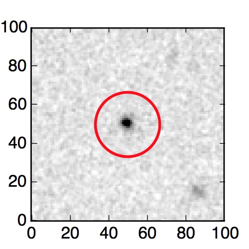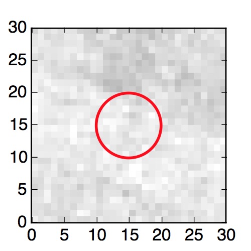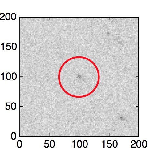 The red circle in the various panels is 1" in radius. The images are 6"x6".