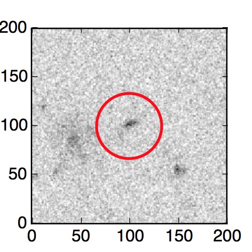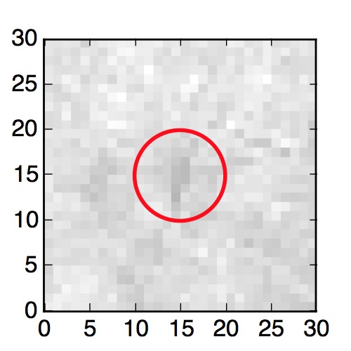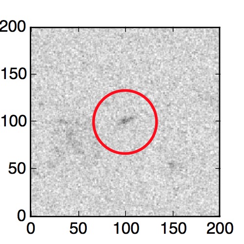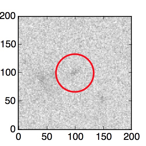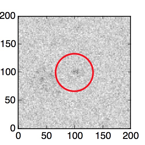 The red circle in the various panels is 1" in radius. The images are 6"x6".