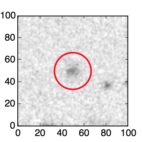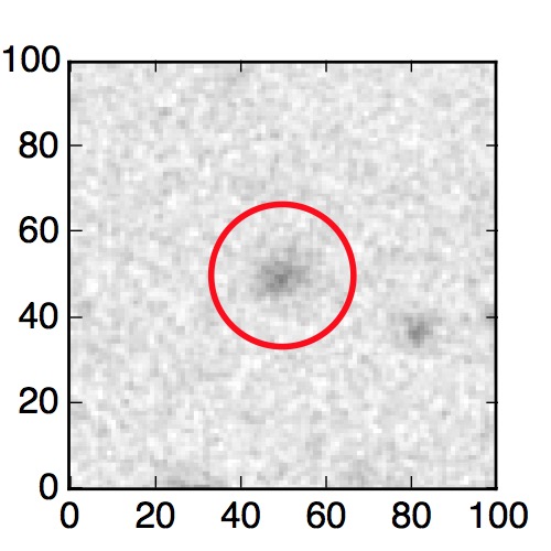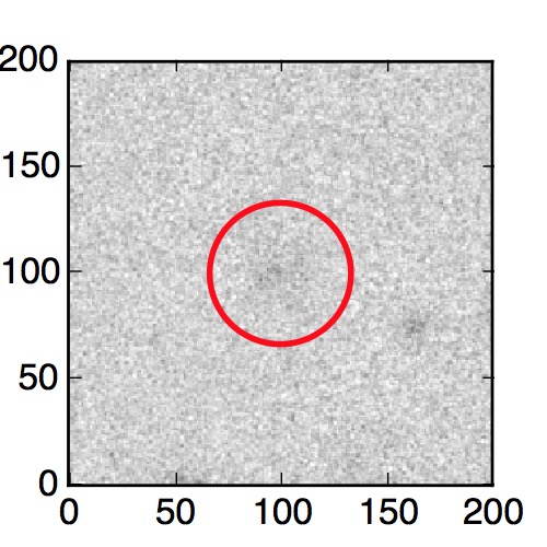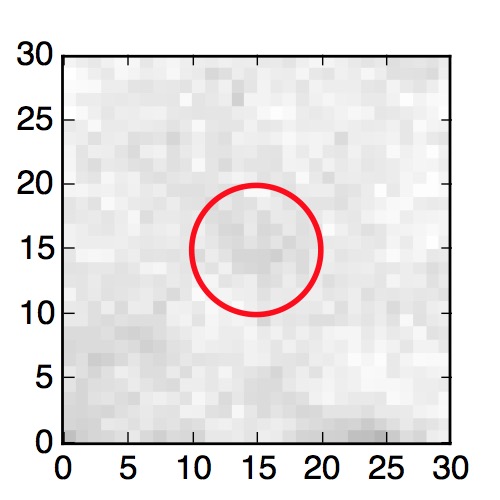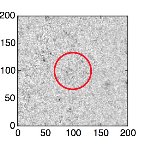 The red circle in the various panels is 1" in radius. The images are 6"x6".