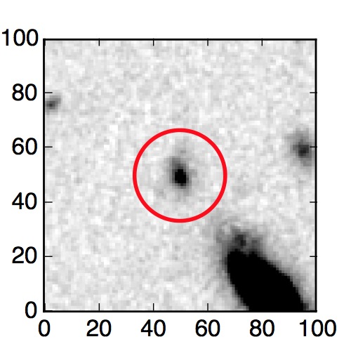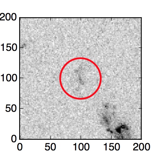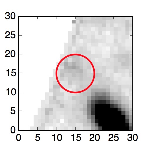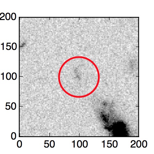 The red circle in the various panels is 1" in radius. The images are 6"x6".