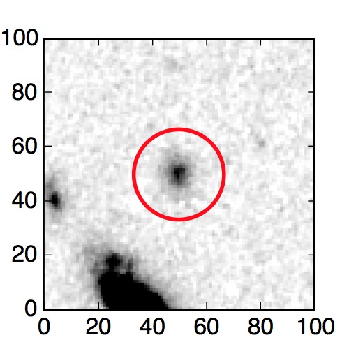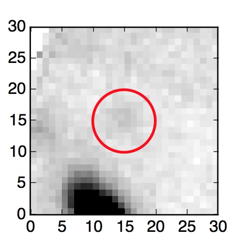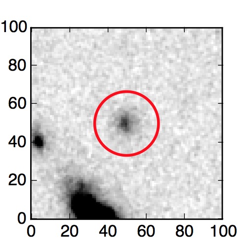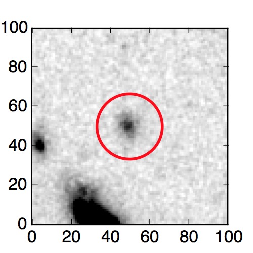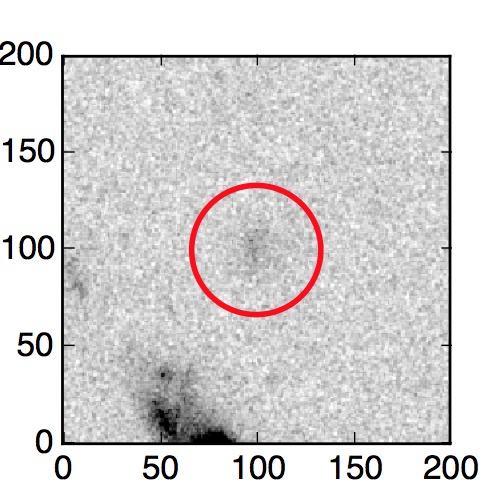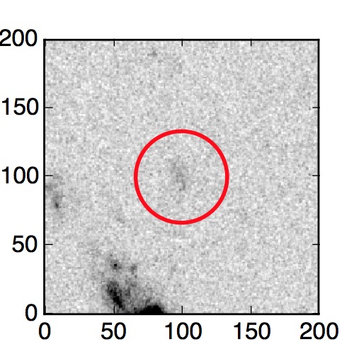 The red circle in the various panels is 1" in radius. The images are 6"x6".