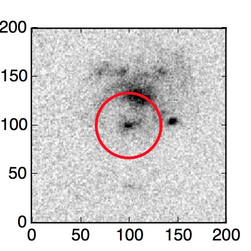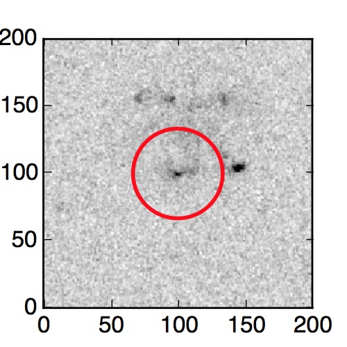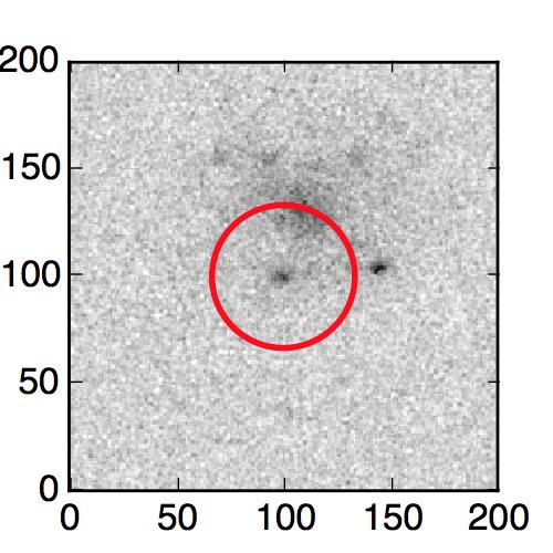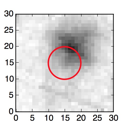 The red circle in the various panels is 1" in radius. The images are 6"x6".