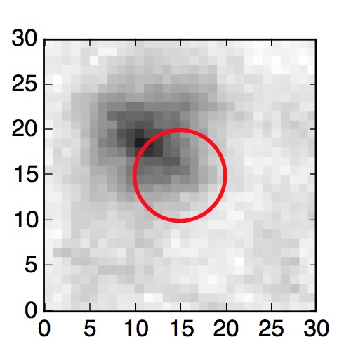 The red circle in the various panels is 1" in radius. The images are 6"x6".