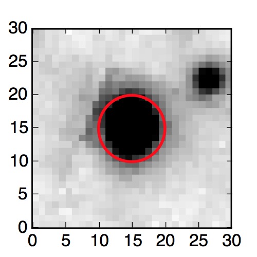 The red circle in the various panels is 1" in radius. The images are 6"x6".