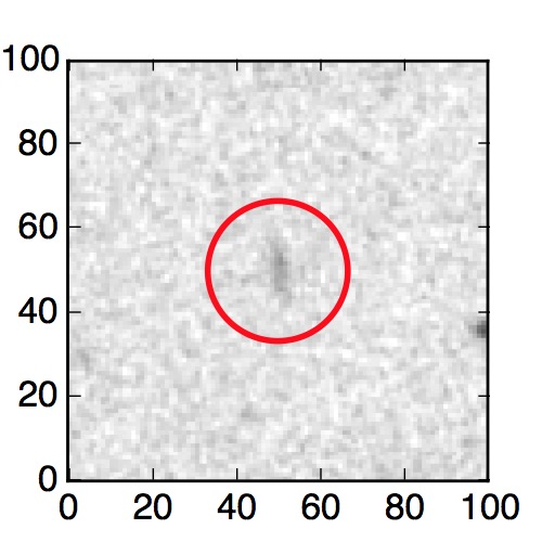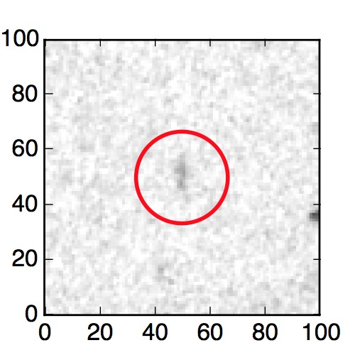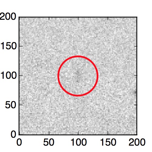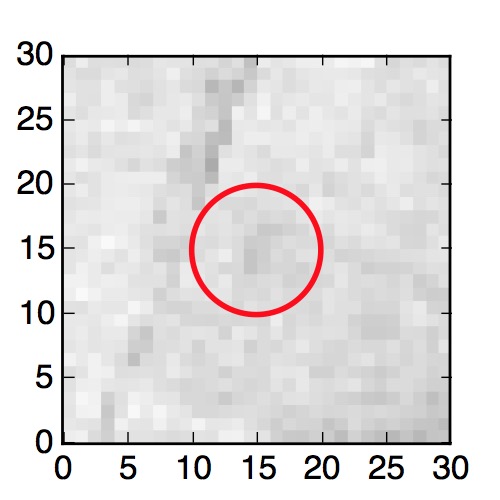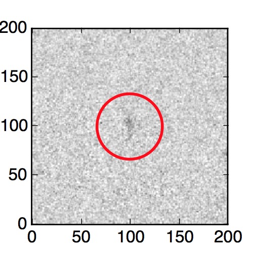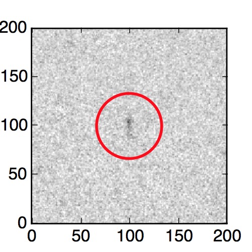 The red circle in the various panels is 1" in radius. The images are 6"x6".