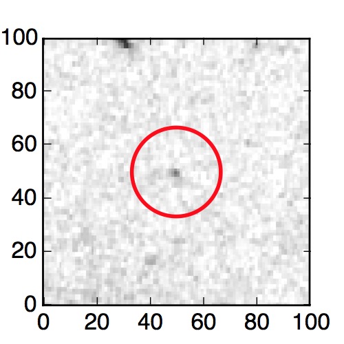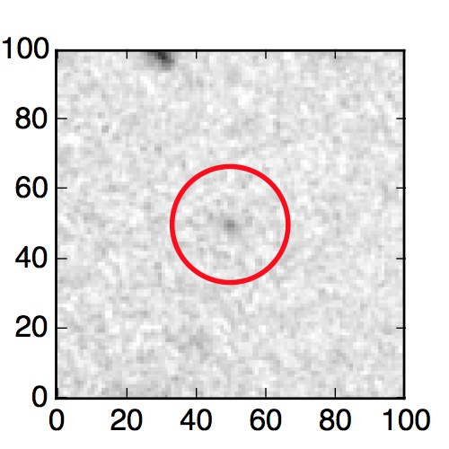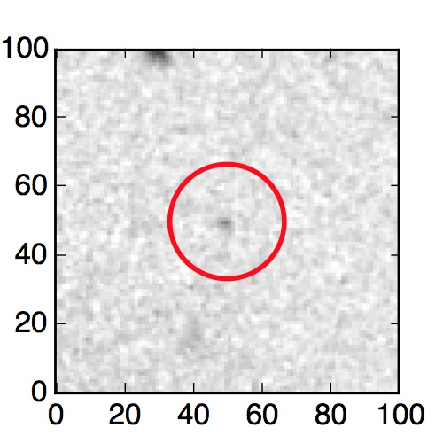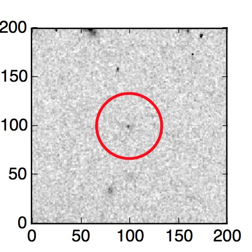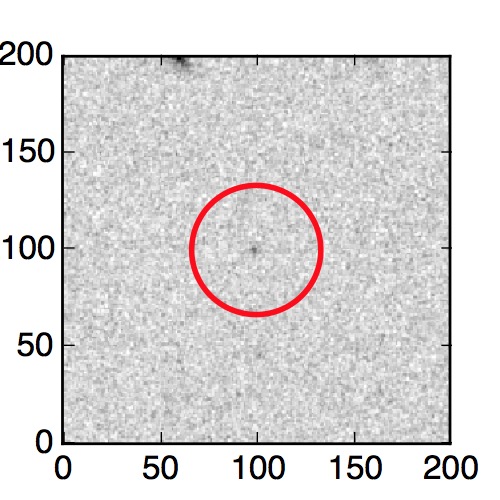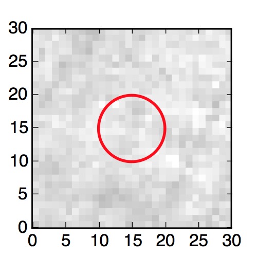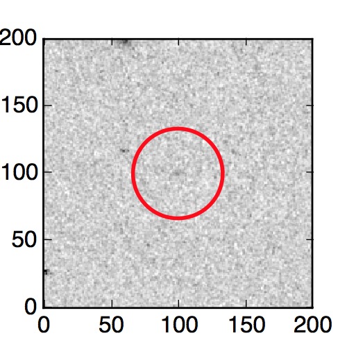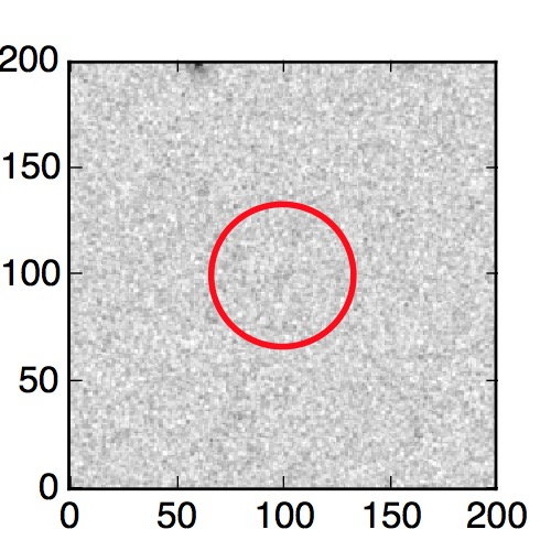 The red circle in the various panels is 1" in radius. The images are 6"x6".