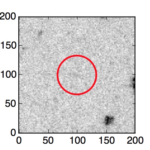The red circle in the various panels is 1" in radius. The images are 6"x6".