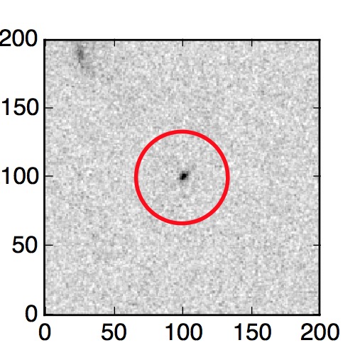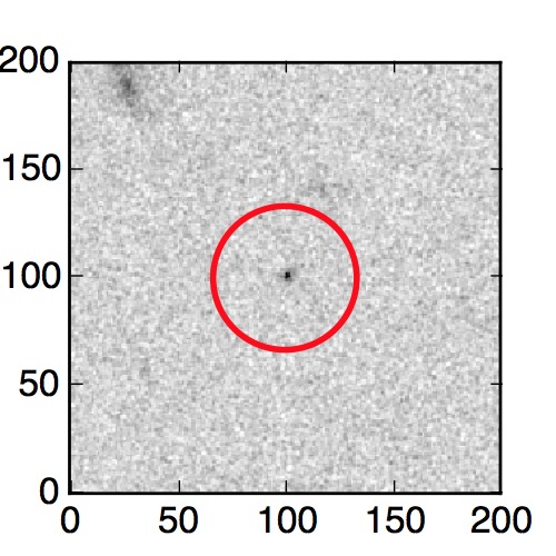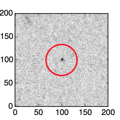 The red circle in the various panels is 1" in radius. The images are 6"x6".