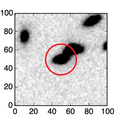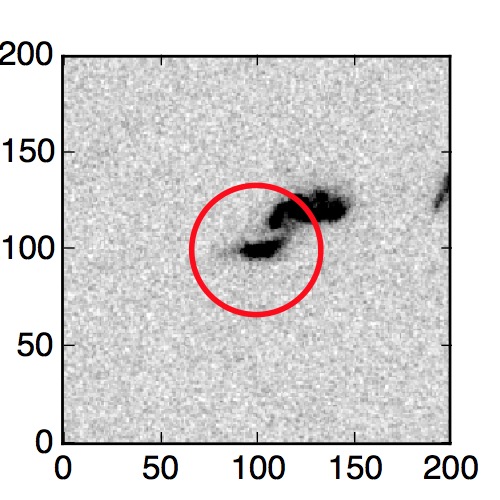 The red circle in the various panels is 1" in radius. The images are 6"x6".
