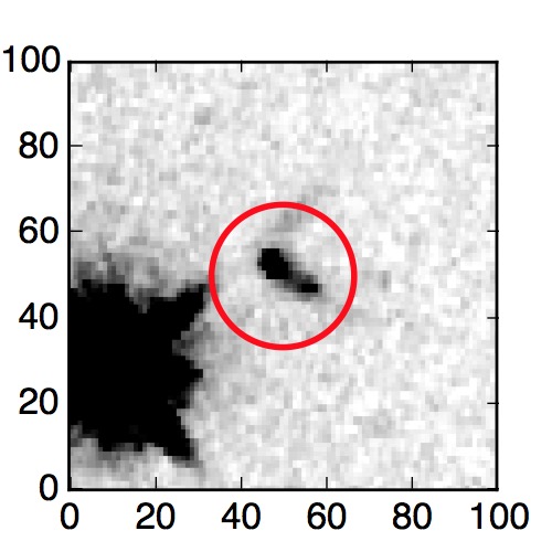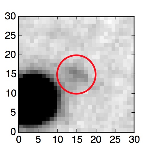The red circle in the various panels is 1" in radius. The images are 6"x6".