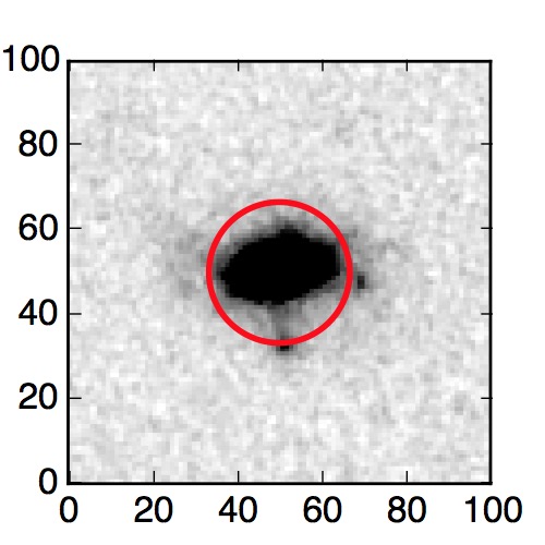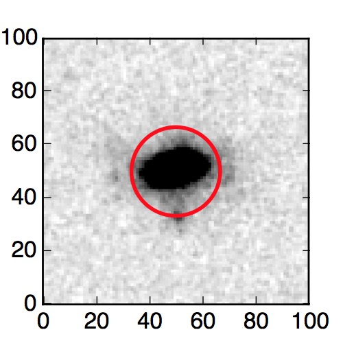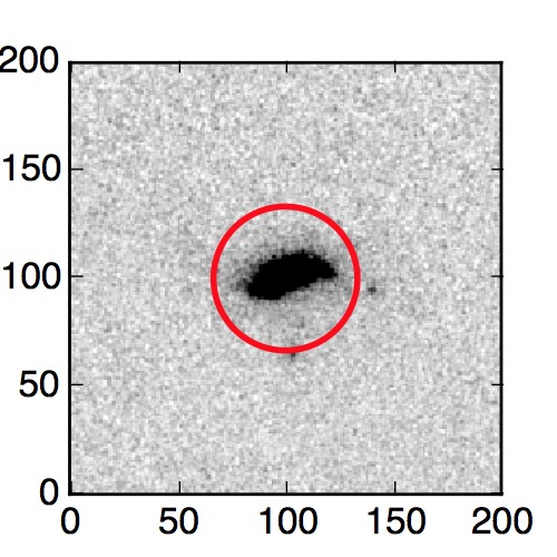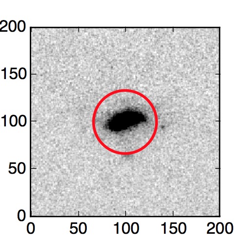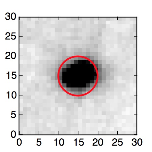 The red circle in the various panels is 1" in radius. The images are 6"x6".