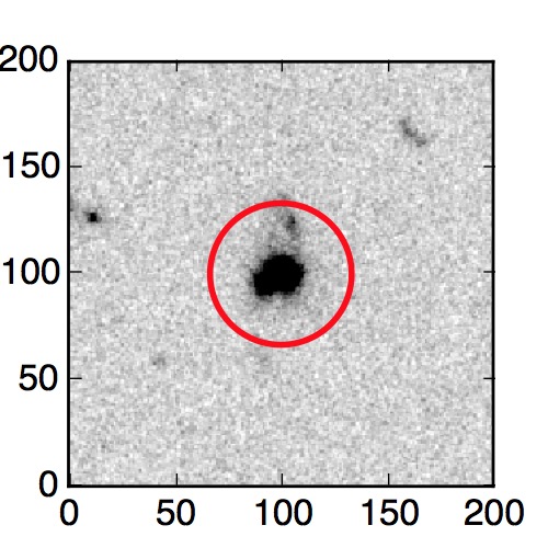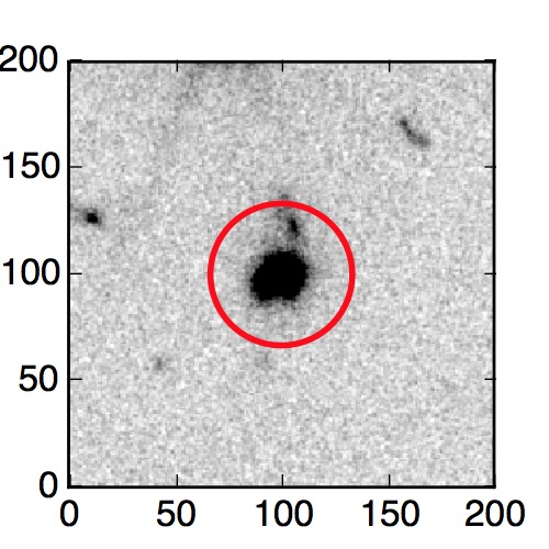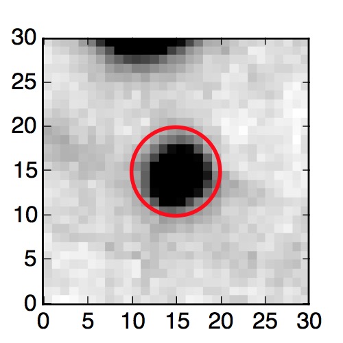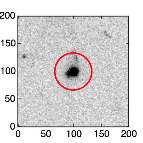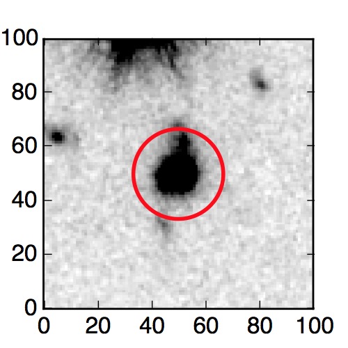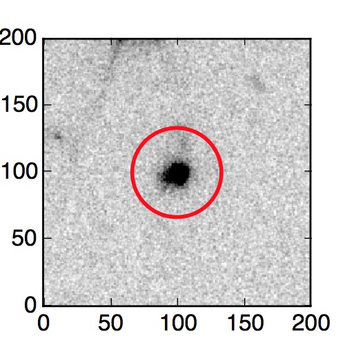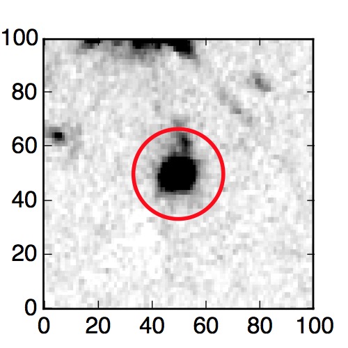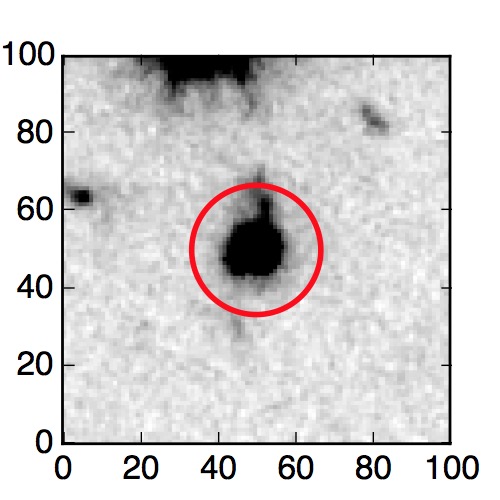 The red circle in the various panels is 1" in radius. The images are 6"x6".