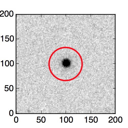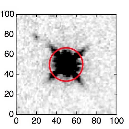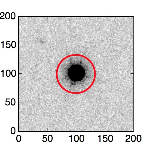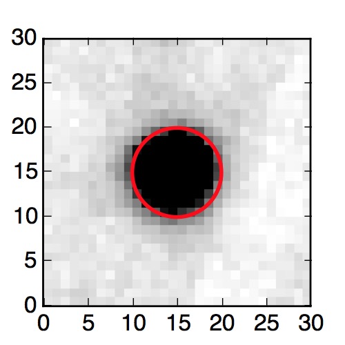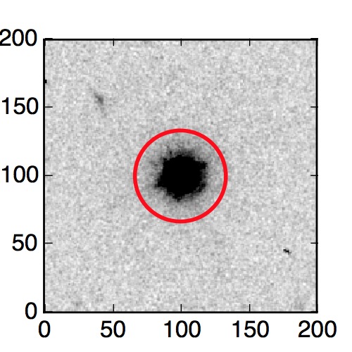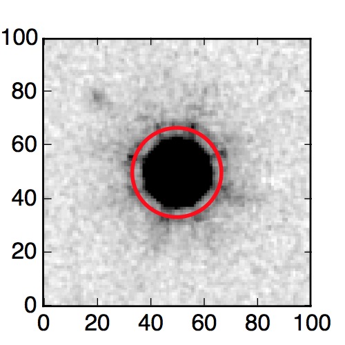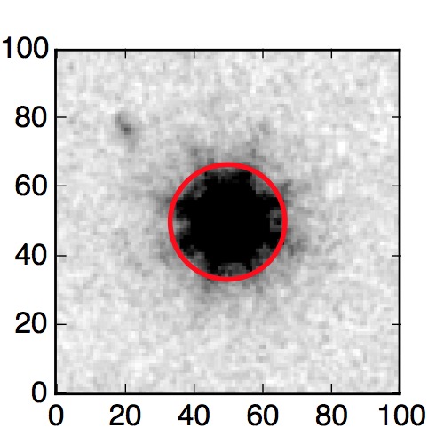 The red circle in the various panels is 1" in radius. The images are 6"x6".