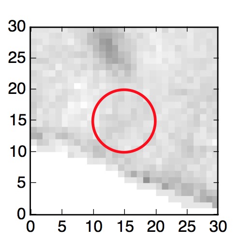 The red circle in the various panels is 1" in radius. The images are 6"x6".