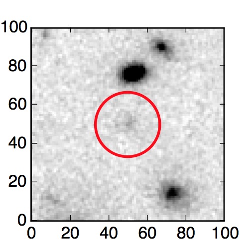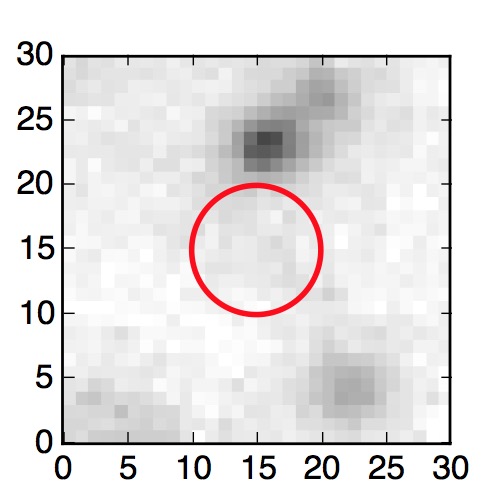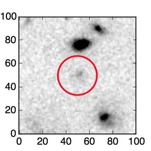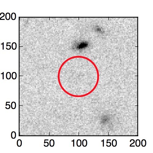 The red circle in the various panels is 1" in radius. The images are 6"x6".