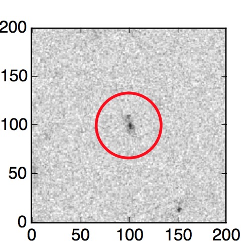 The red circle in the various panels is 1" in radius. The images are 6"x6".