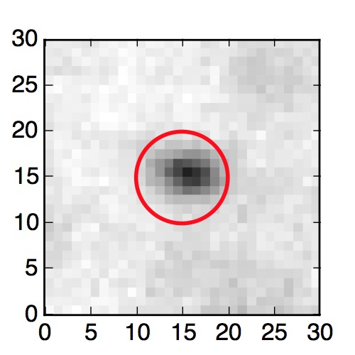 The red circle in the various panels is 1" in radius. The images are 6"x6".