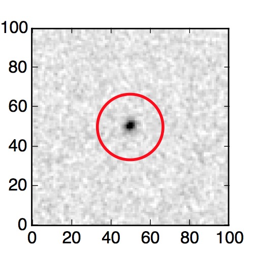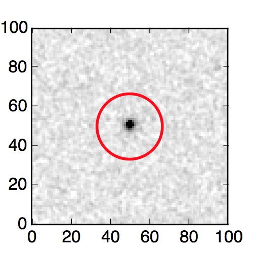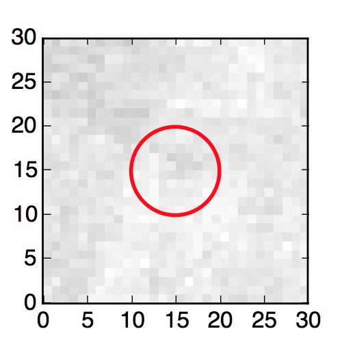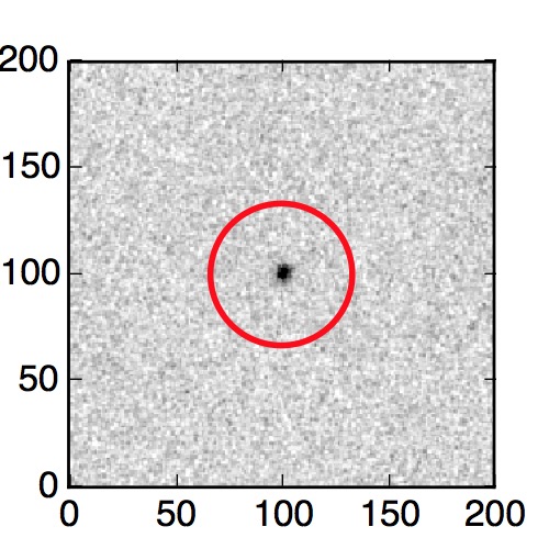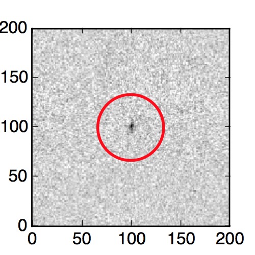 The red circle in the various panels is 1" in radius. The images are 6"x6".