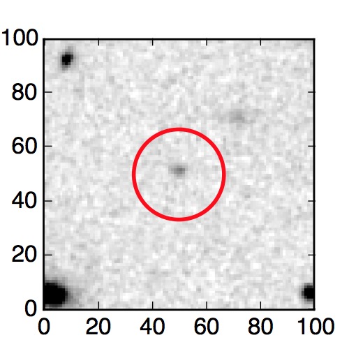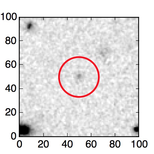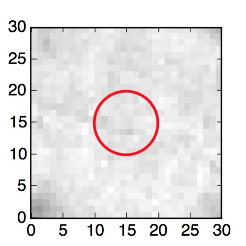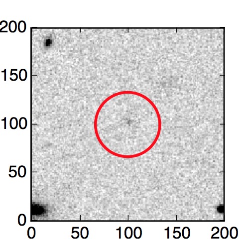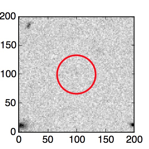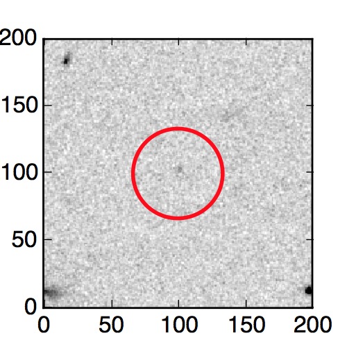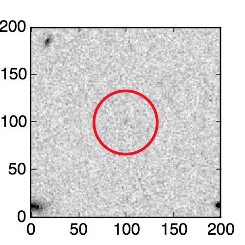 The red circle in the various panels is 1" in radius. The images are 6"x6".