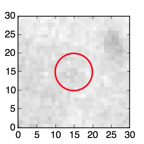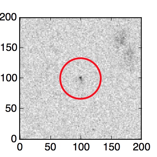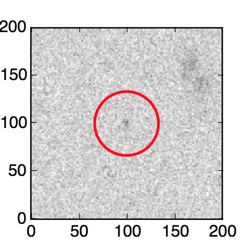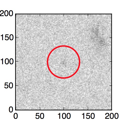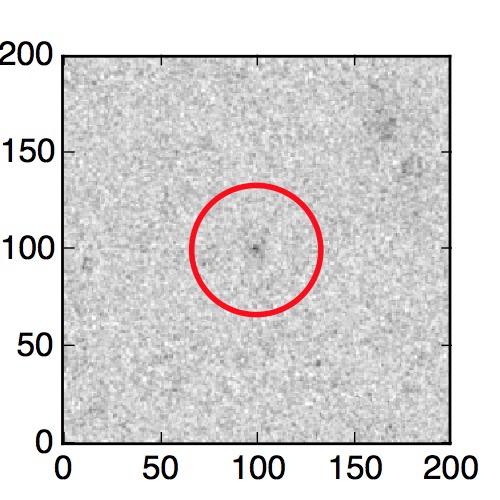 The red circle in the various panels is 1" in radius. The images are 6"x6".