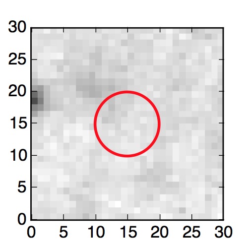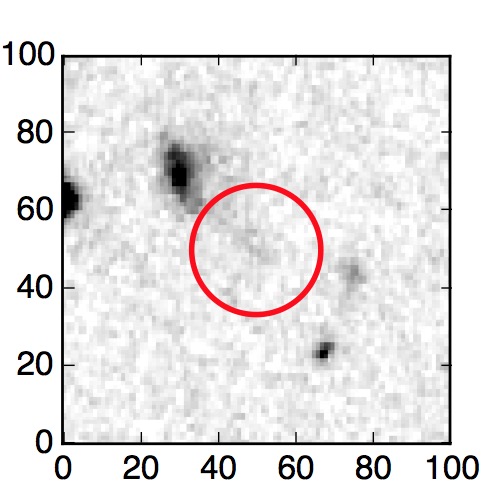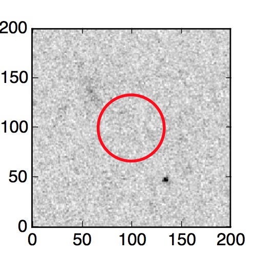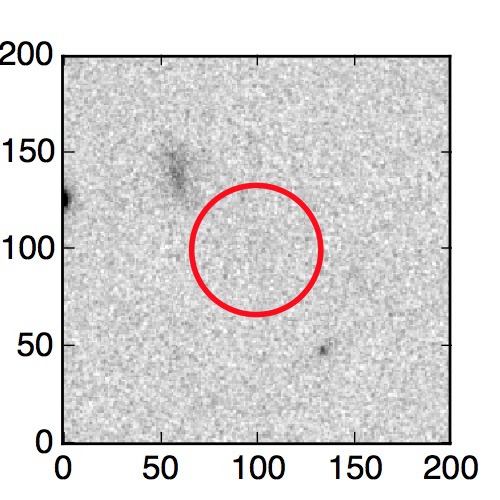 The red circle in the various panels is 1" in radius. The images are 6"x6".