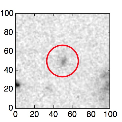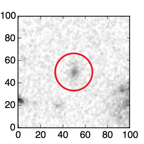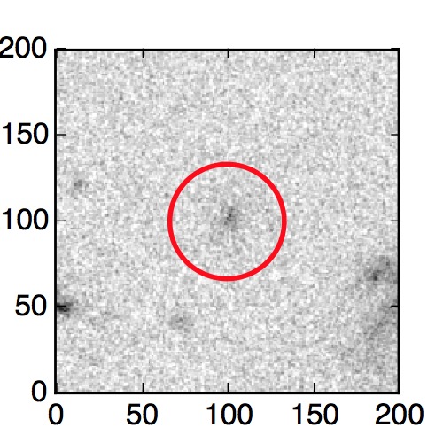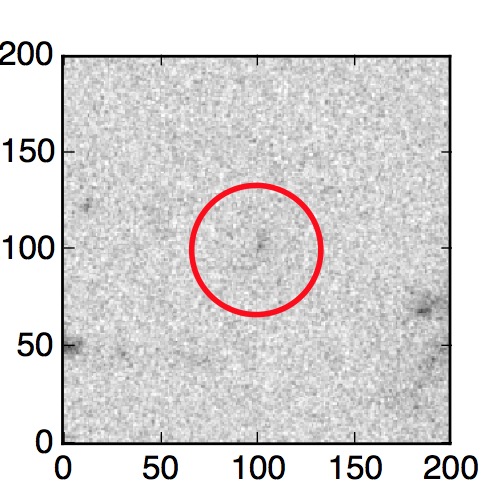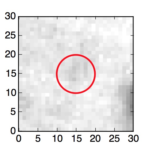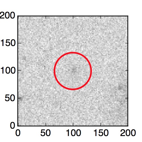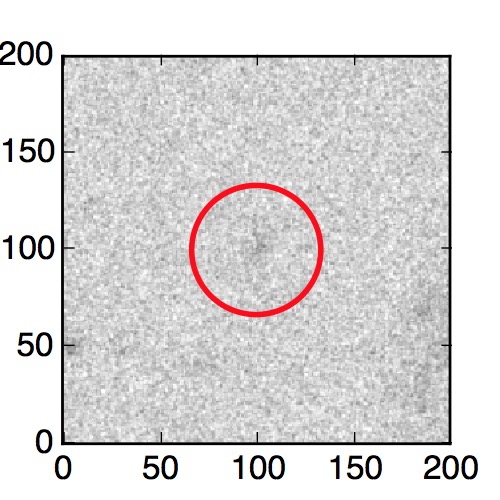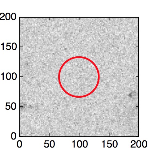 The red circle in the various panels is 1" in radius. The images are 6"x6".