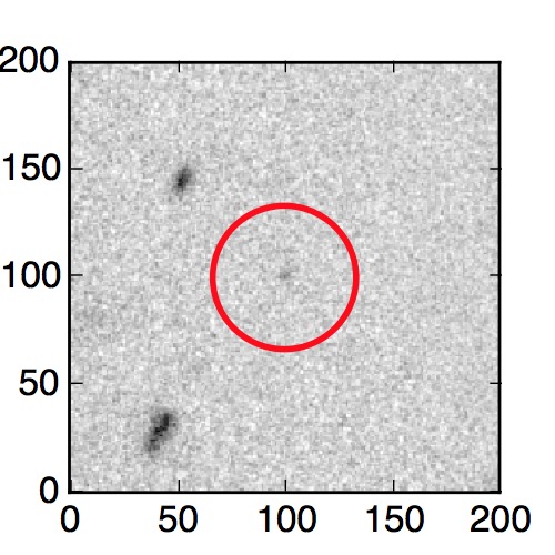 The red circle in the various panels is 1" in radius. The images are 6"x6".