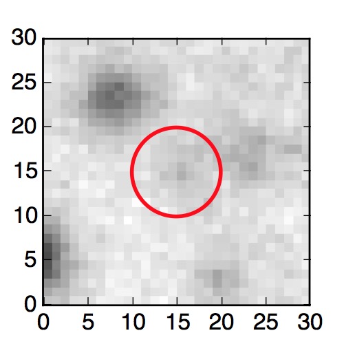 The red circle in the various panels is 1" in radius. The images are 6"x6".