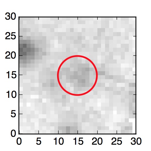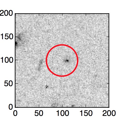 The red circle in the various panels is 1" in radius. The images are 6"x6".