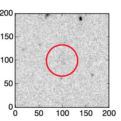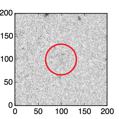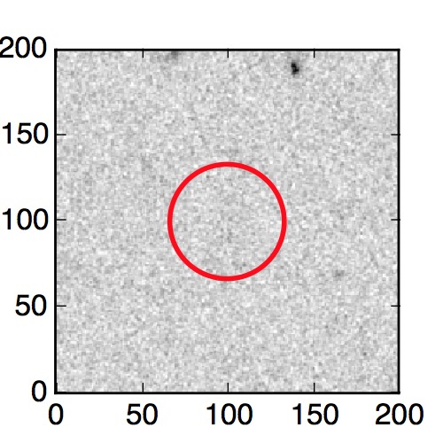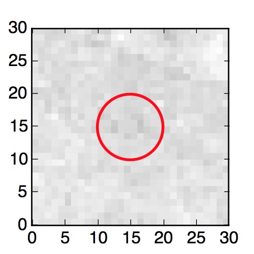 The red circle in the various panels is 1" in radius. The images are 6"x6".