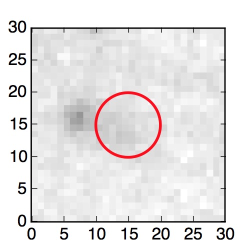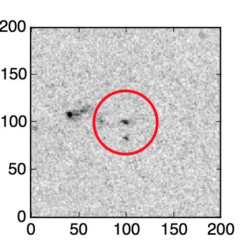 The red circle in the various panels is 1" in radius. The images are 6"x6".