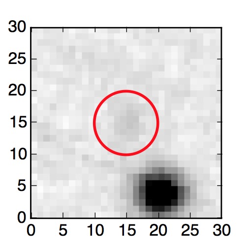 The red circle in the various panels is 1" in radius. The images are 6"x6".