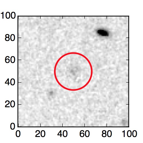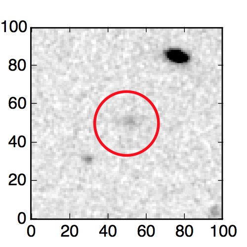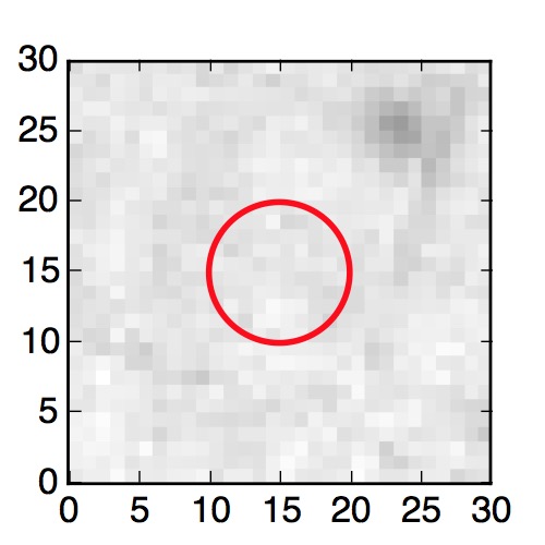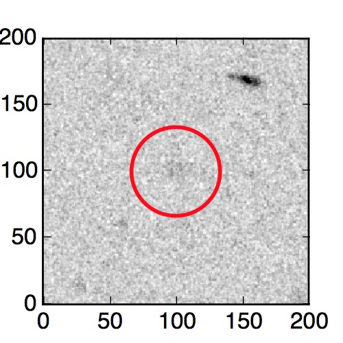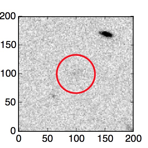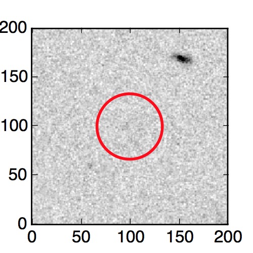 The red circle in the various panels is 1" in radius. The images are 6"x6".