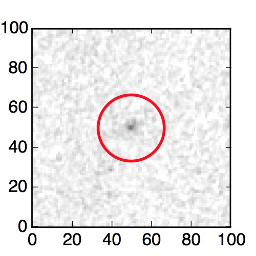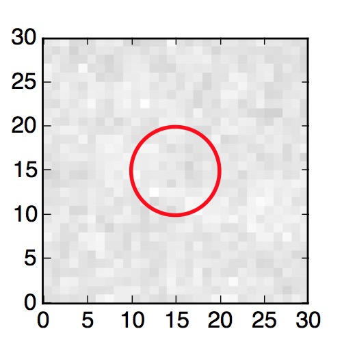 The red circle in the various panels is 1" in radius. The images are 6"x6".