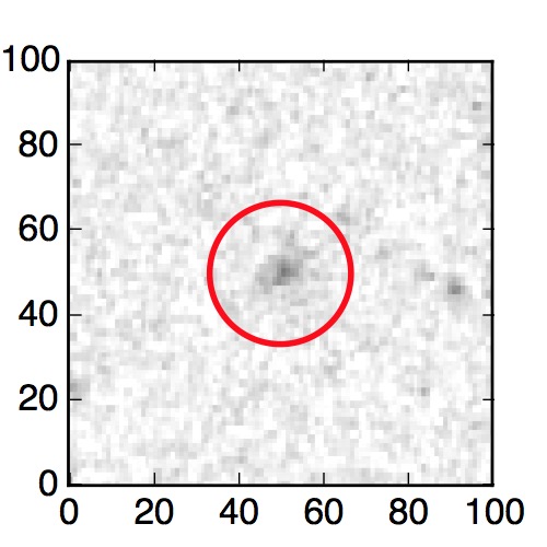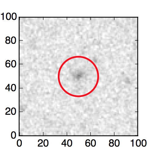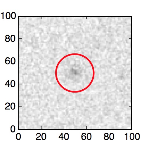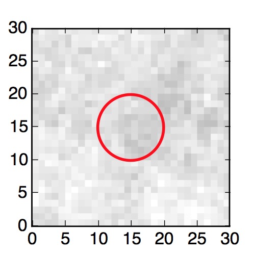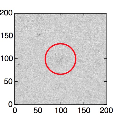 The red circle in the various panels is 1" in radius. The images are 6"x6".