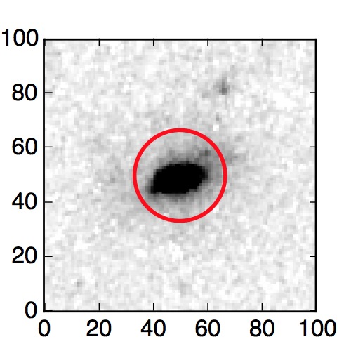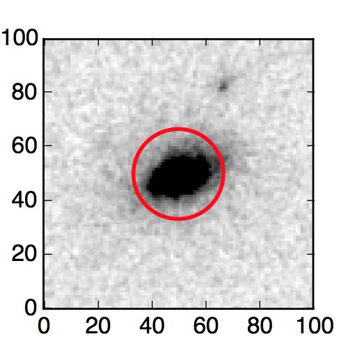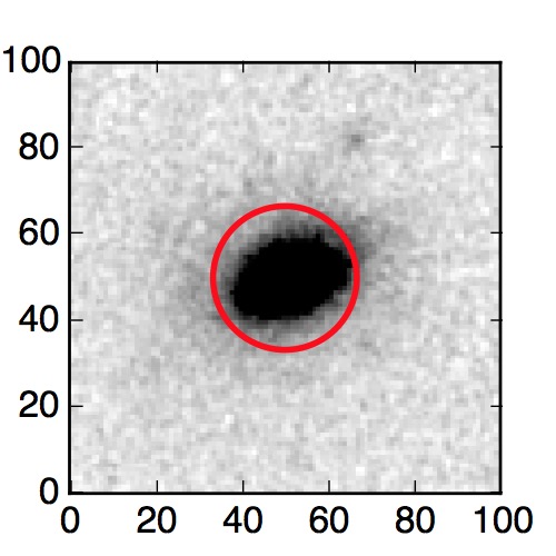 The red circle in the various panels is 1" in radius. The images are 6"x6".