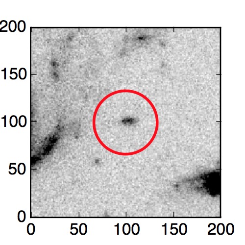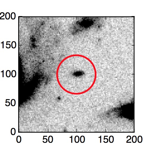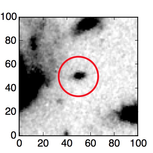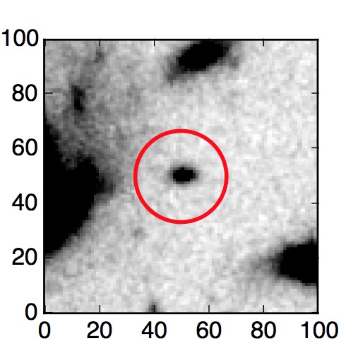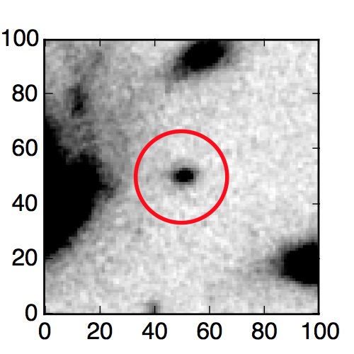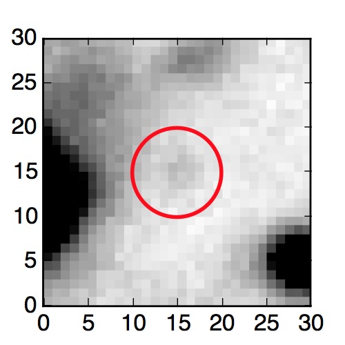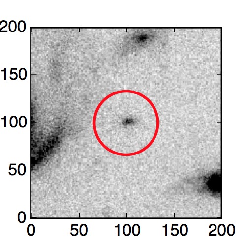 The red circle in the various panels is 1" in radius. The images are 6"x6".
