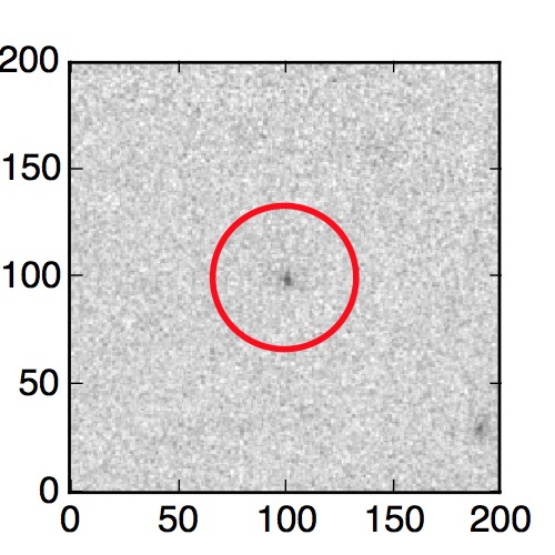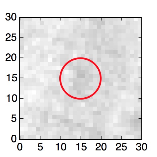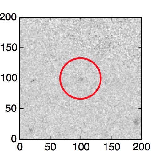 The red circle in the various panels is 1" in radius. The images are 6"x6".