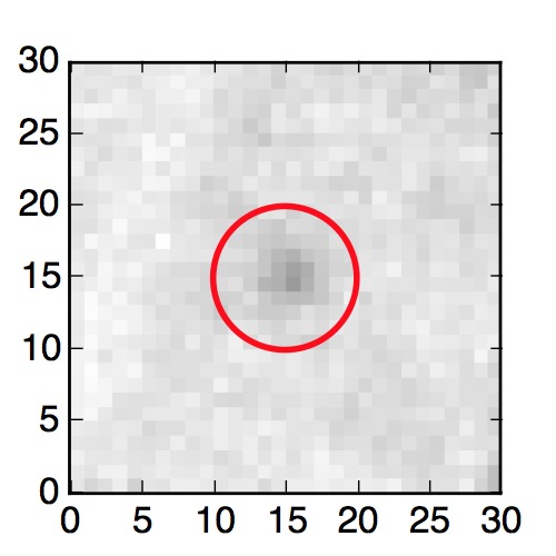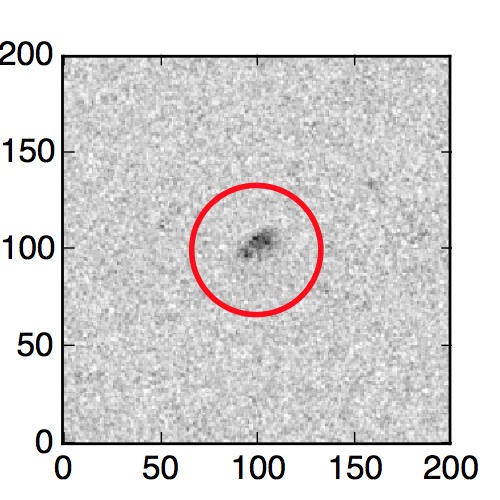 The red circle in the various panels is 1" in radius. The images are 6"x6".