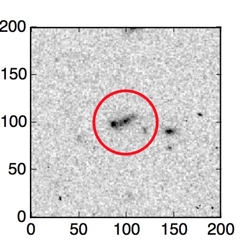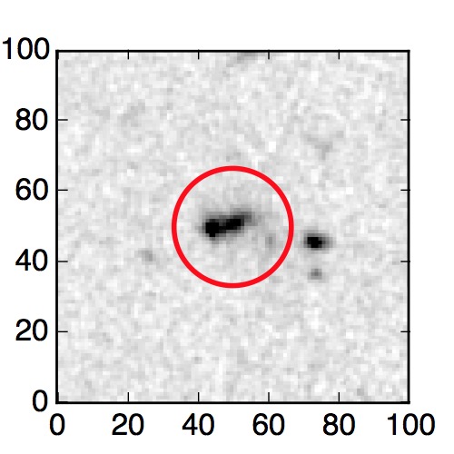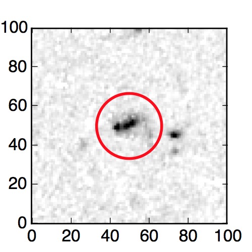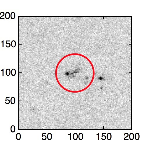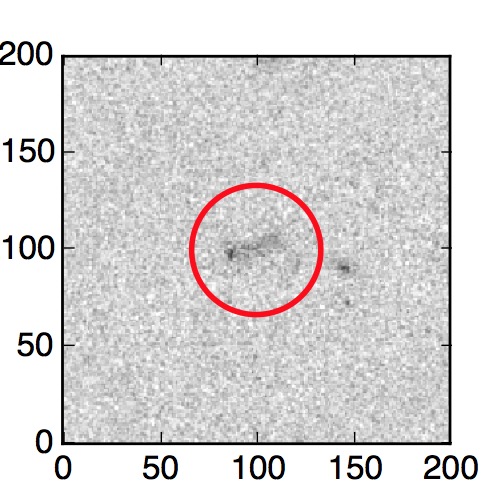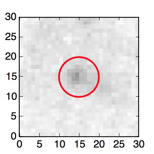 The red circle in the various panels is 1" in radius. The images are 6"x6".