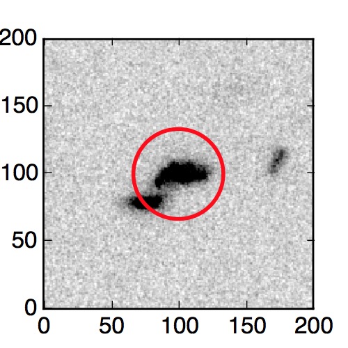 The red circle in the various panels is 1" in radius. The images are 6"x6".