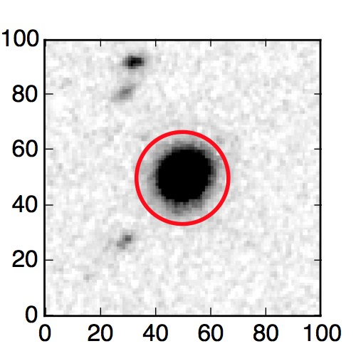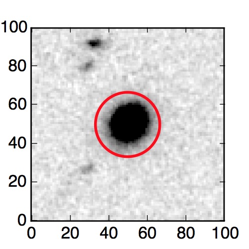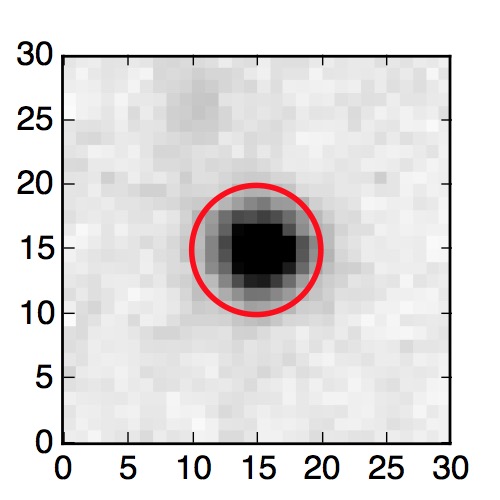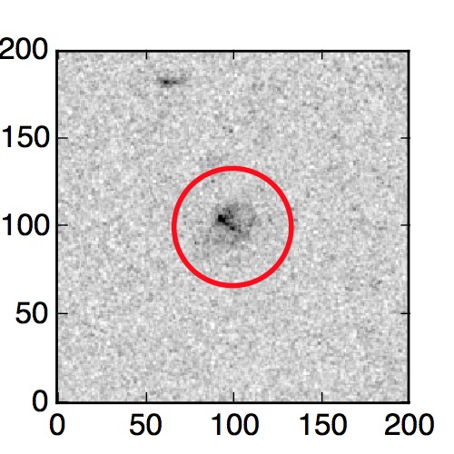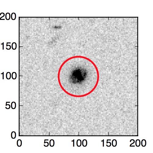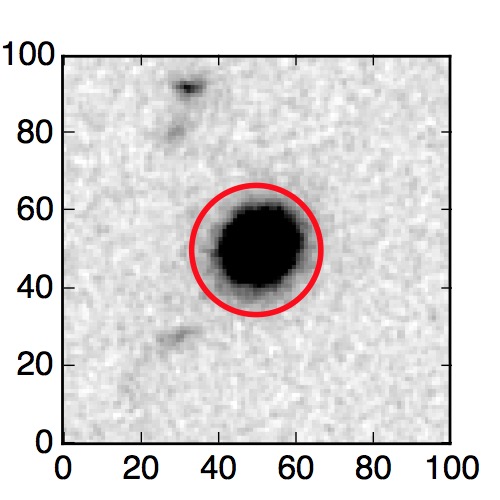 The red circle in the various panels is 1" in radius. The images are 6"x6".