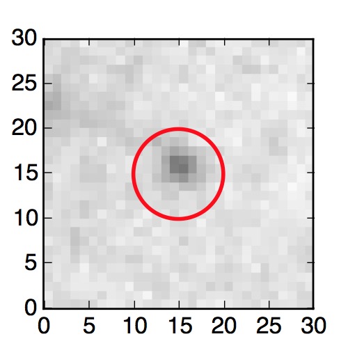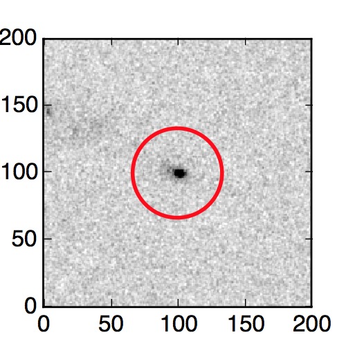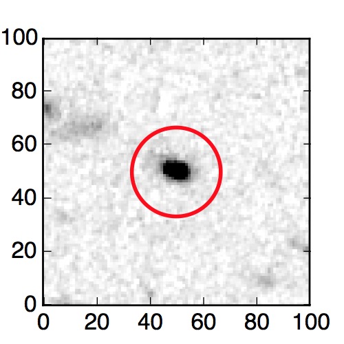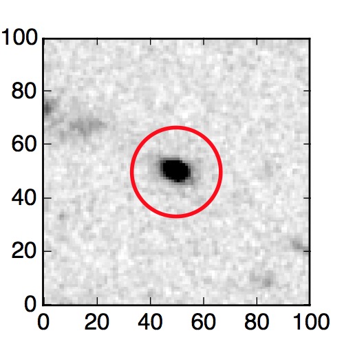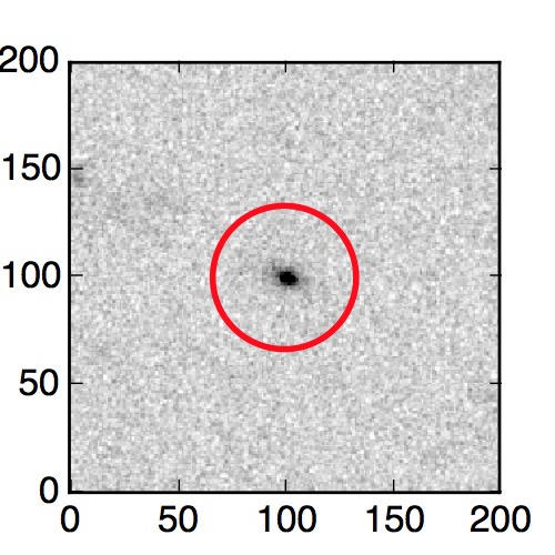 The red circle in the various panels is 1" in radius. The images are 6"x6".
