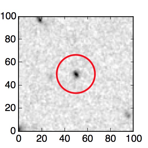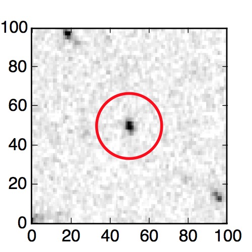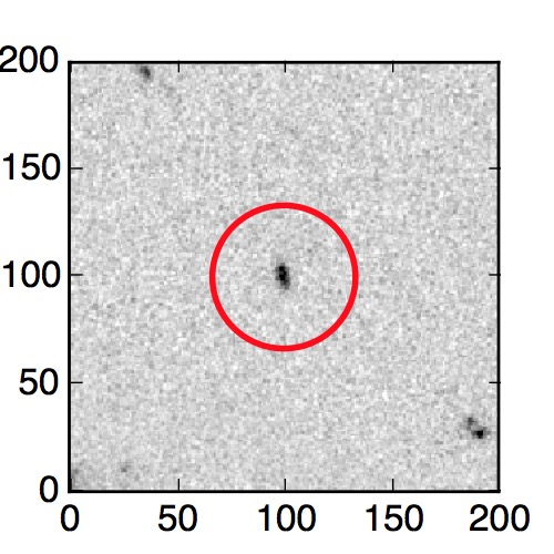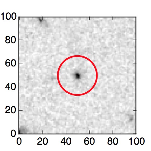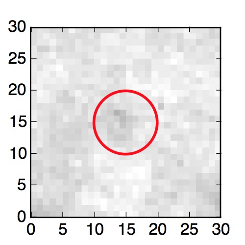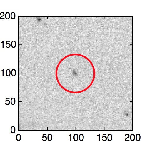 The red circle in the various panels is 1" in radius. The images are 6"x6".