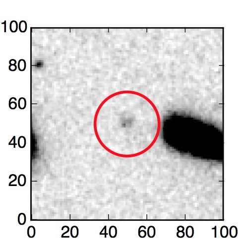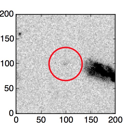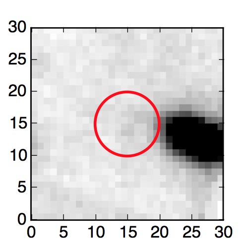 The red circle in the various panels is 1" in radius. The images are 6"x6".