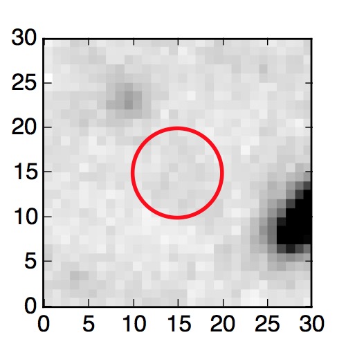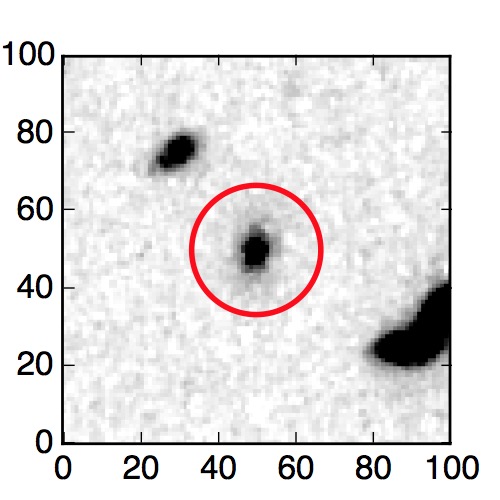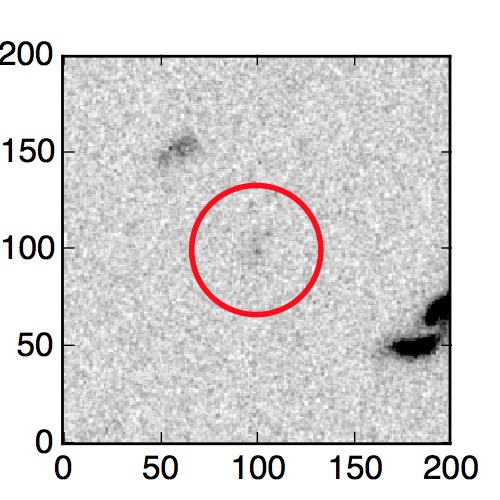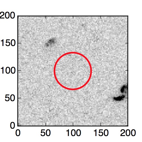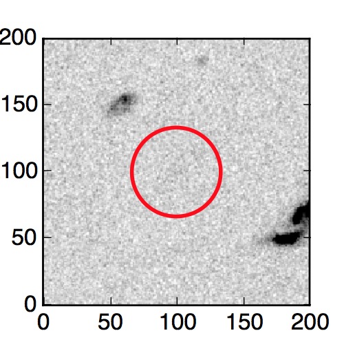The red circle in the various panels is 1" in radius. The images are 6"x6".