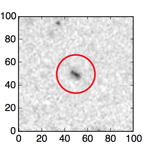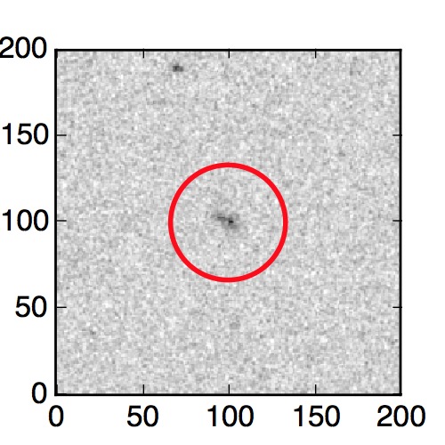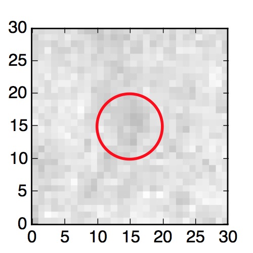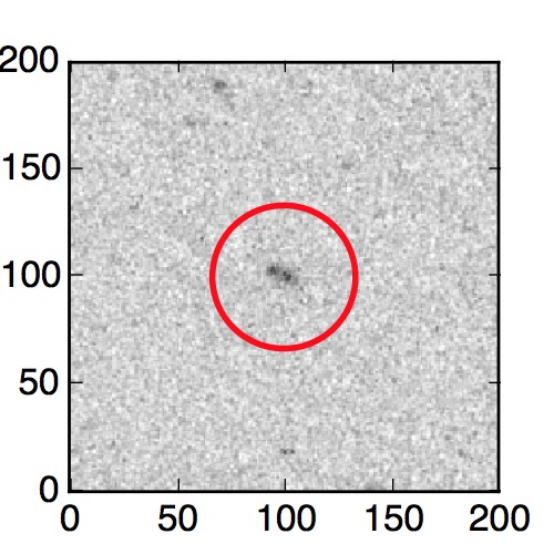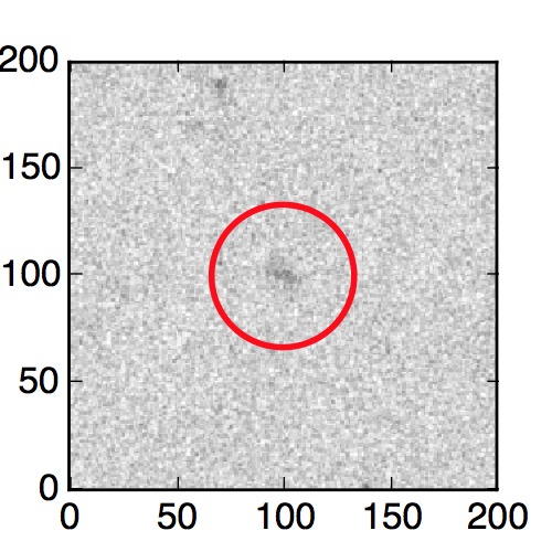 The red circle in the various panels is 1" in radius. The images are 6"x6".