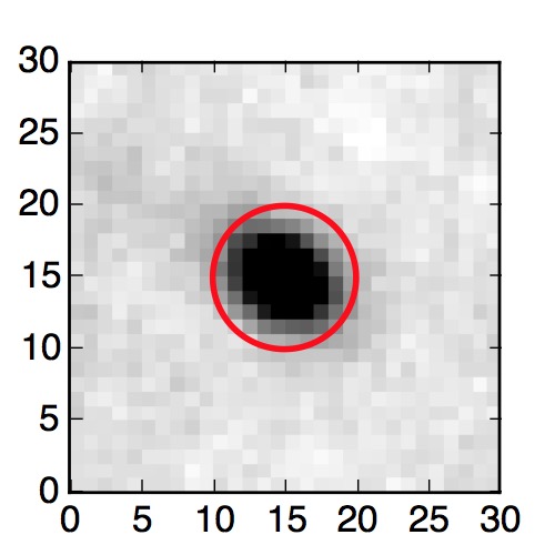 The red circle in the various panels is 1" in radius. The images are 6"x6".