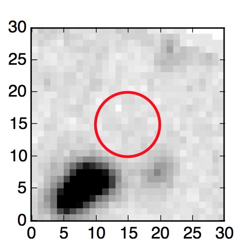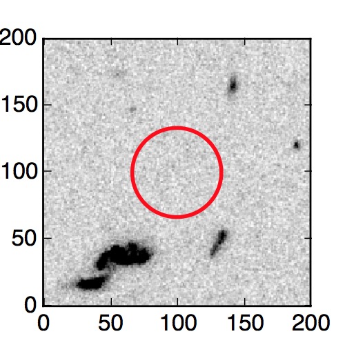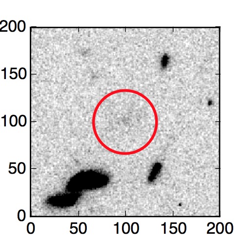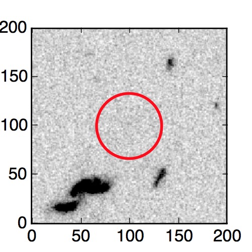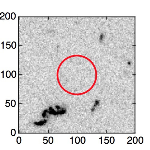 The red circle in the various panels is 1" in radius. The images are 6"x6".