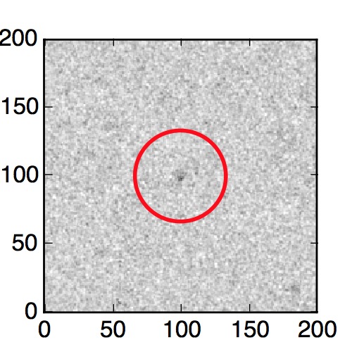The red circle in the various panels is 1" in radius. The images are 6"x6".